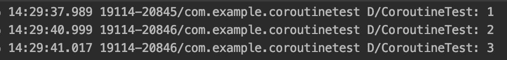 위 코드 결과 값을 보면 3초 딜레이를 후에 차례대로 출력되는걸 알 수 있습니다. 시간을 지연하는 join, delay는 코루틴 안에서만 사용 가능합니다.