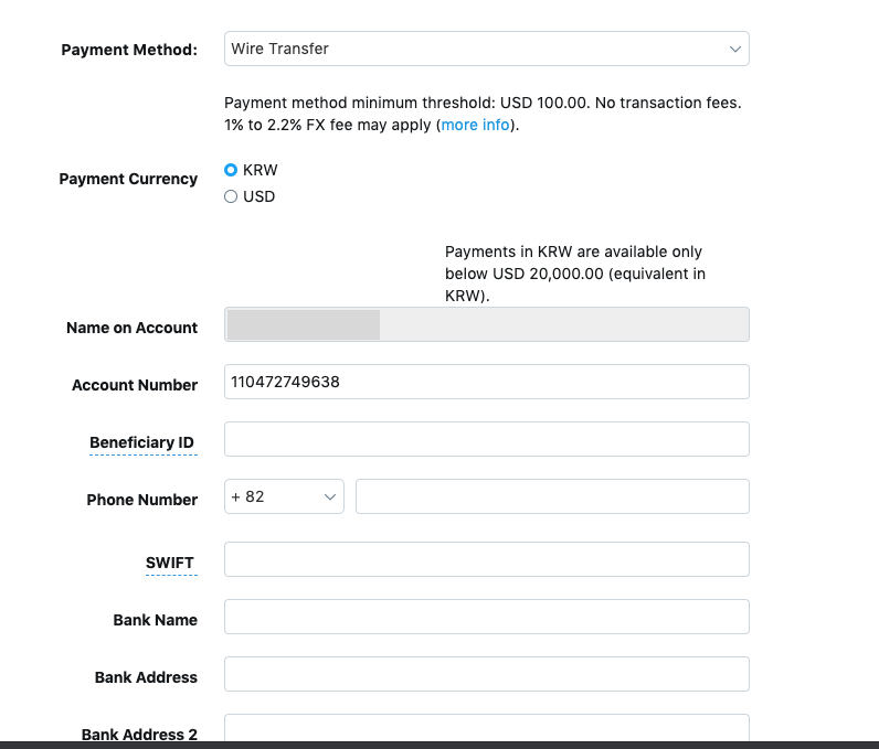 - Beneficiary ID : 주민번호, 여권번호, 회사 사업자 등록번호? 로 입력해야 합니다.