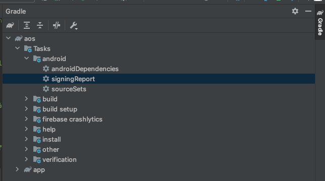 Tasks 자체가 없거나 signingReport를 찾을수 없으신 분들은 Preferences -> Experimental 에서 'Do not Build Gradle task list during Gradle sync' 를 체크해제 하시고 프로젝트 싱크를 맞추시면 됩니다.