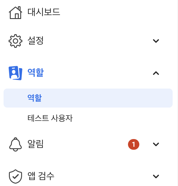 아래 사진처럼 로그인 후 좌측에 '역할' 메뉴에서 테스터나 개발자등 알맞는 역할에 추가하면 됩니다.
