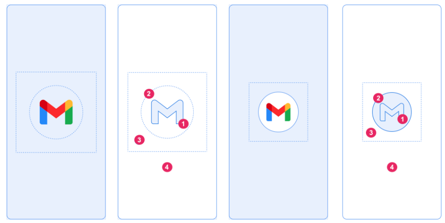 아래는 구글 지메일 예시로 앱 구동시 M의 모양 색상이 변하는걸 보실수 있습니다.
