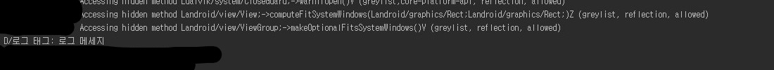 기본적으로 로그는 Log.d(String tag, String msg)를 사용해 태그와 메세지를 출력합니다.
